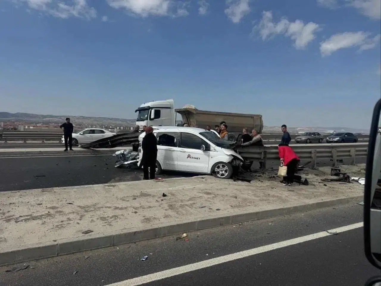 Ankara'nın Sincan ilçesinde Yenikent-İstanbul yolu bağlantısında korkutan bir trafik kazası yaşandı. Direksiyon hakimiyetini kaybeden sürücünün kullandığı hafif ticari araç yol kenarındaki bariyerlere çarptı. Çarpmanın şiddetiyle demir bariyer aracın ön camından girerek arkasından çıktı.