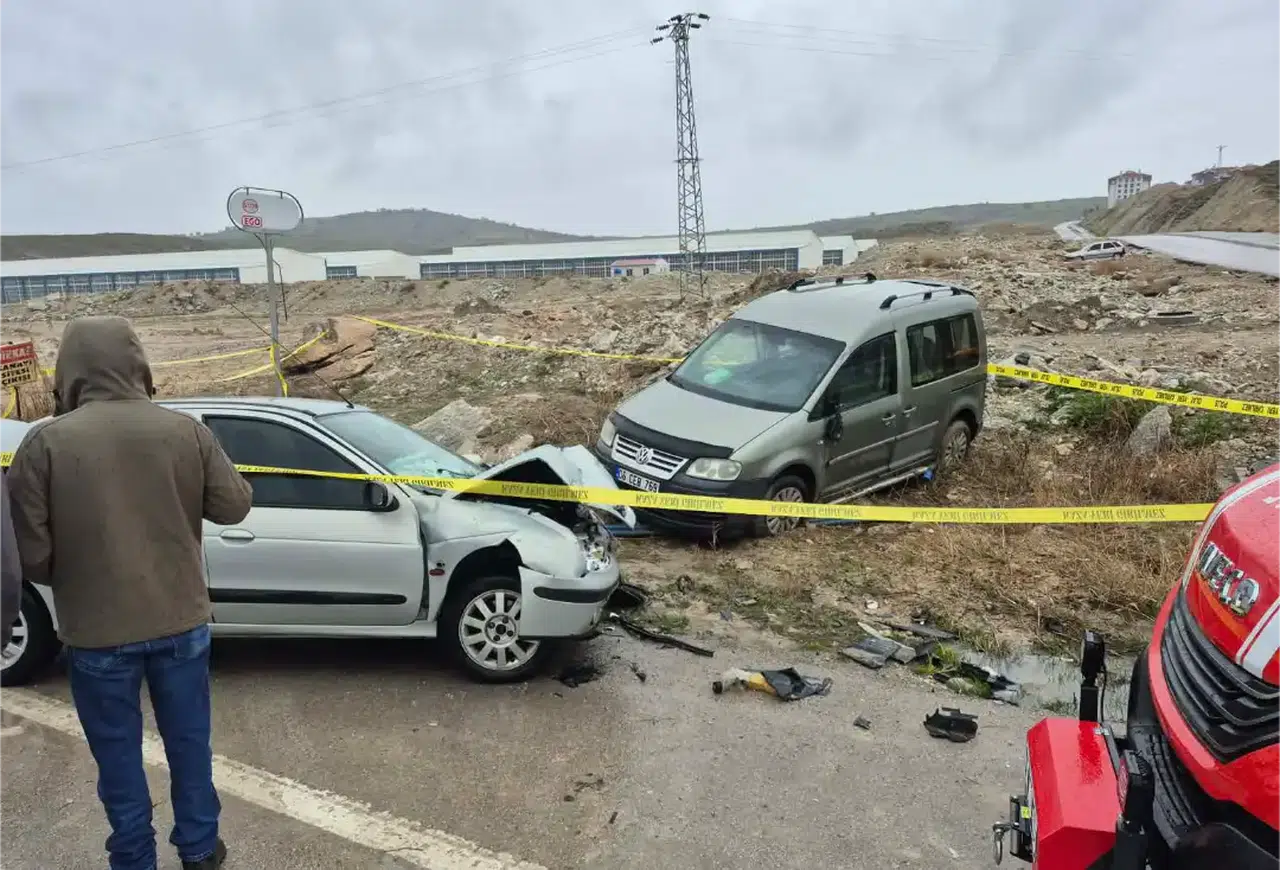 Edinilen bilgilere göre, hafif ticari araç ile otomobil yağmur nedeniyle kayganlaşan yolda çarpıştı.