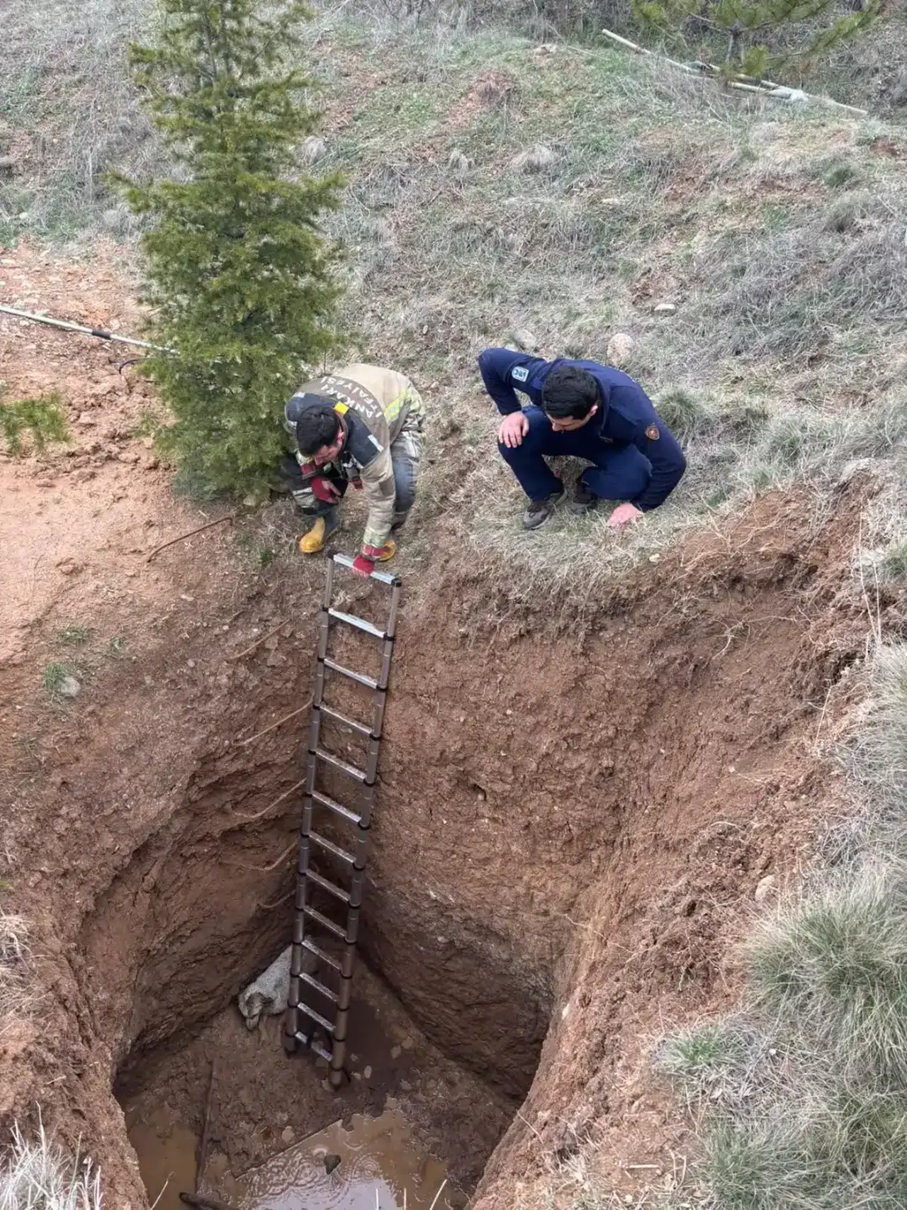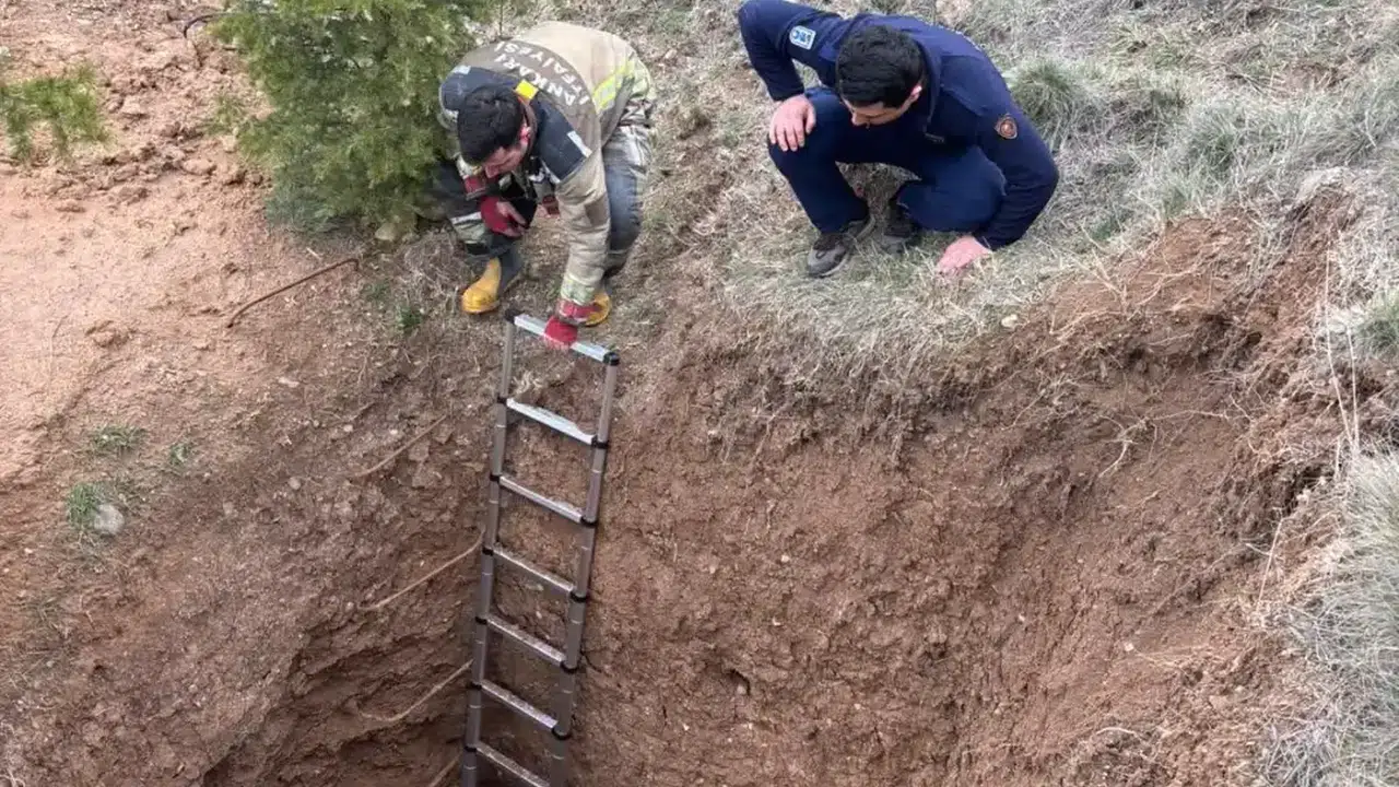 Ankara’nın Akyurt ilçesinde kaçak kazı yapılan alanda çukura düşen sokak köpeği, ekiplerin müdahalesiyle kurtarıldı.