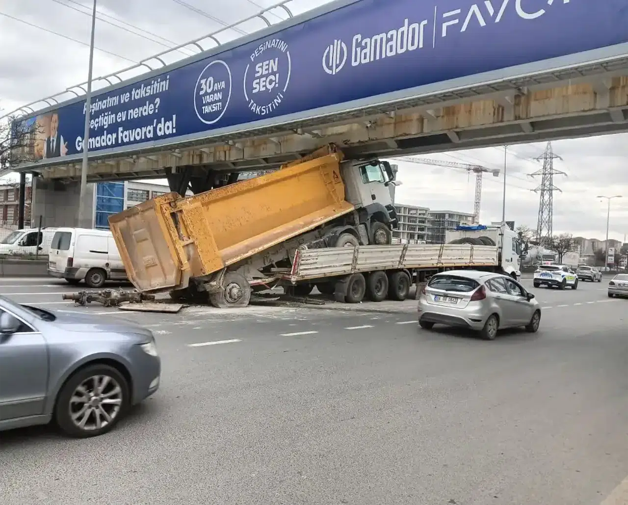 Olay, Yenimahalle ilçesi Bağdat Caddesi üzerinde gerçekleşti. İddiaya göre, özel bir firmaya ait tır, dorsesinde yüklü bulunan hafriyat kamyonuyla birlikte ilerlediği sırada üst geçidin altından geçmek istedi. Yükseklik hesabının tutmaması sonucu hafriyat kamyonu üst geçide çarparak sıkıştı.