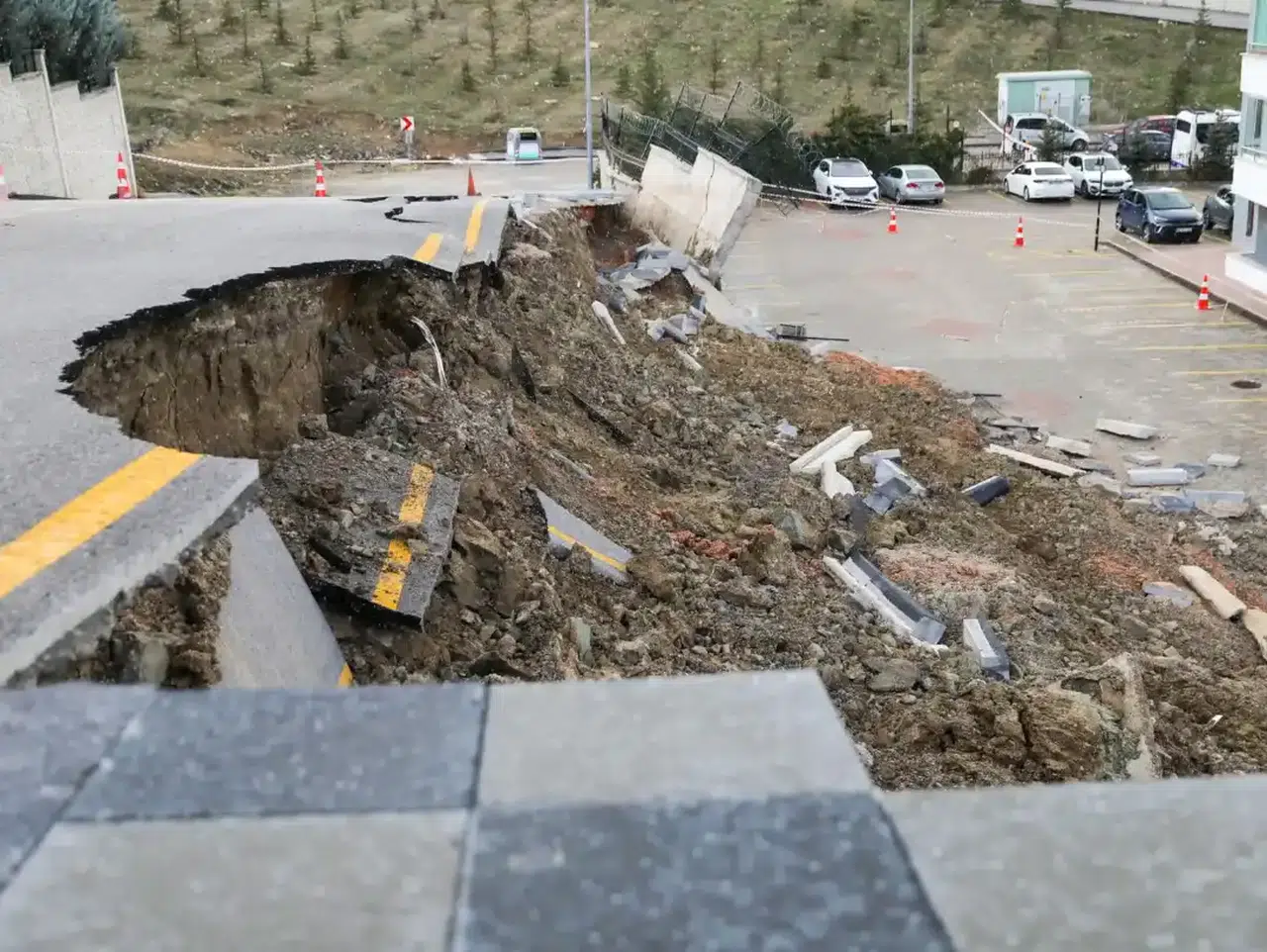 Çökme nedeniyle asfalt zeminde derin çatlaklar meydana gelirken, kaldırım hattında da kırılmalar oluştuğu görüldü. Zemindeki kayma sonucu bazı beton parçalarının yer değiştirdiği tespit edildi. Ekipler tarafından bölgede detaylı teknik değerlendirme başlatıldı.