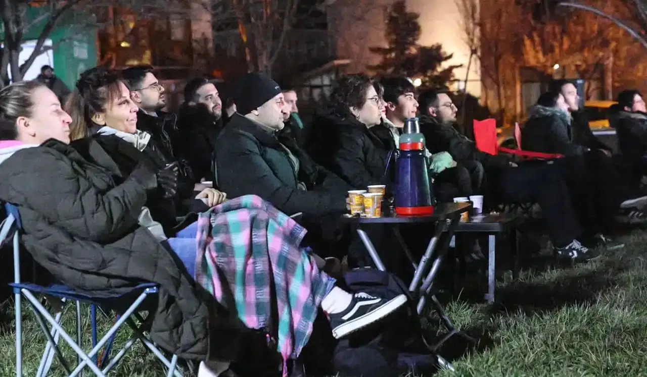 Çayyolu Muharrem Dalkılıç Parkı ve İsmet İnönü Parkı’na kurulan dev ekranlar, soğuk havaya rağmen yoğun ilgi gördü.