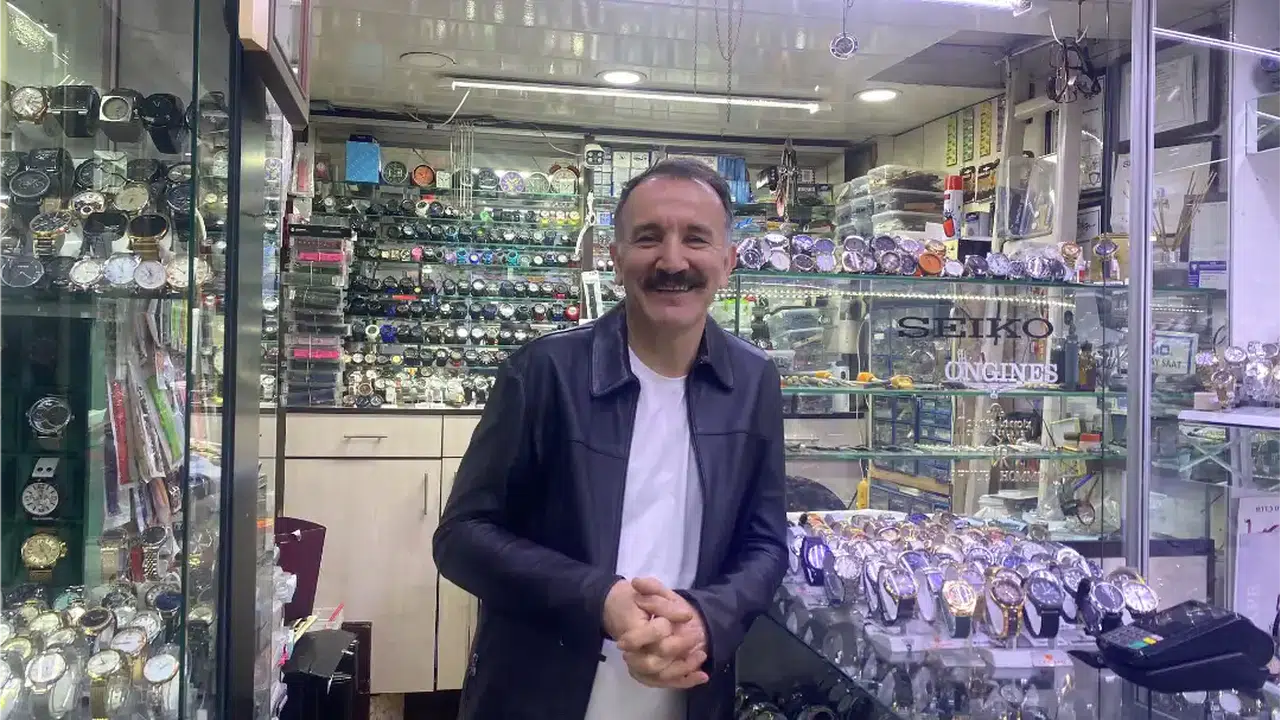 Burada mesleğini sürdüren Tuncay Terli, babadan oğula geçen saatçilik geleneğinin son temsilcilerinden biri olarak dikkat çekiyor.