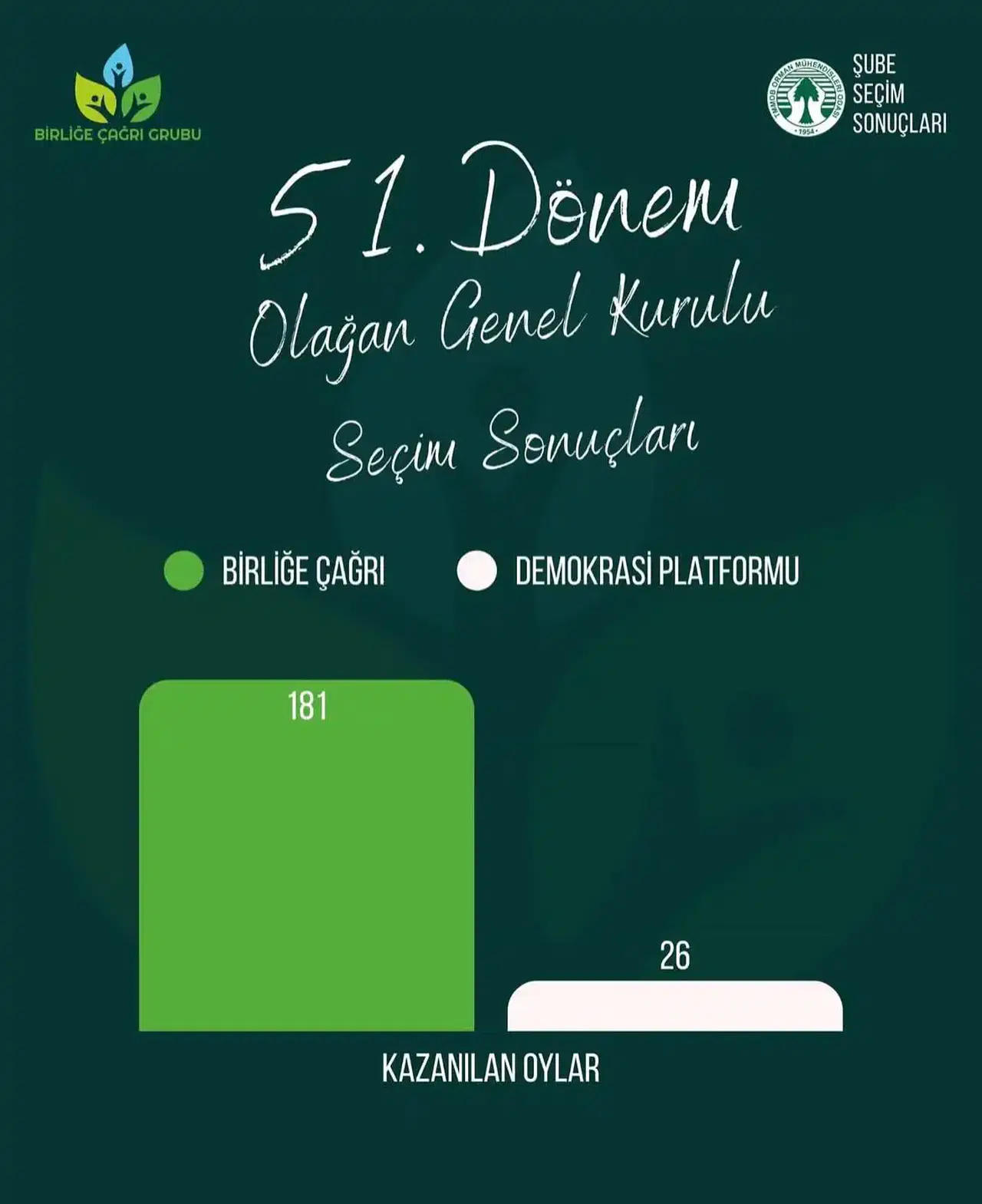 Kullanılan 207 oyun 181’ini alan Birliğe Çağrı Grubu, %87 oy oranıyla seçimleri kazanarak dikkat çekici bir sonuca imza attı.